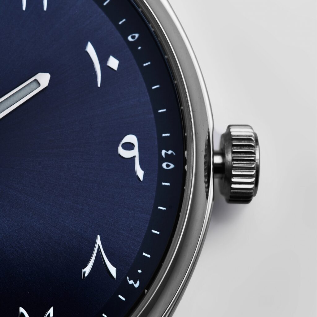 - Dial: Arabic, Embossed Silver